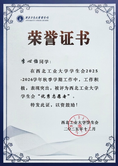 学生会“优秀志愿者”荣誉,用实际行动诠释了新时代大学生崇德向善、乐于奉献的精神风貌。